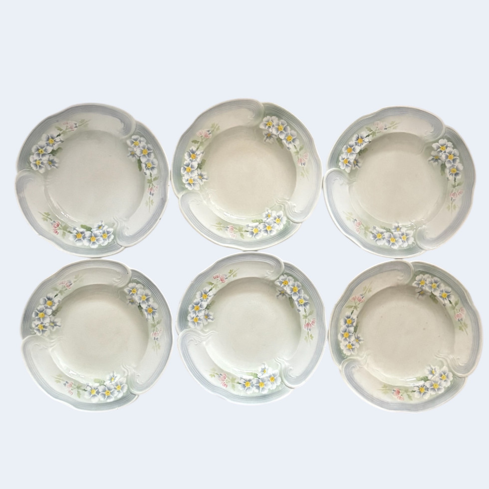6 assiettes à soupe à décor de fleurs de pommier Keller et Guerin / Lunéville